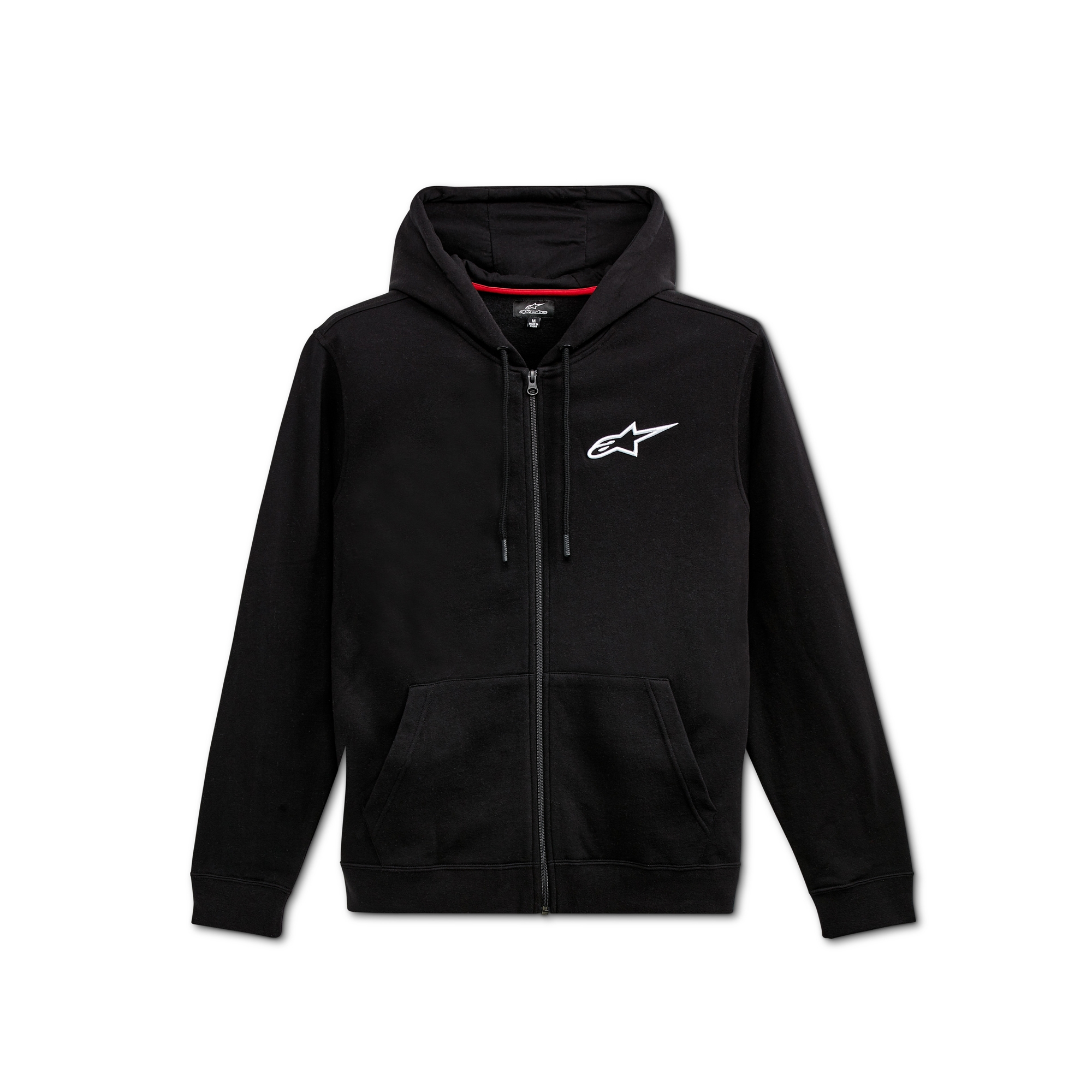 • Exposed reverse coil zipper, 3D embroidery chest logo