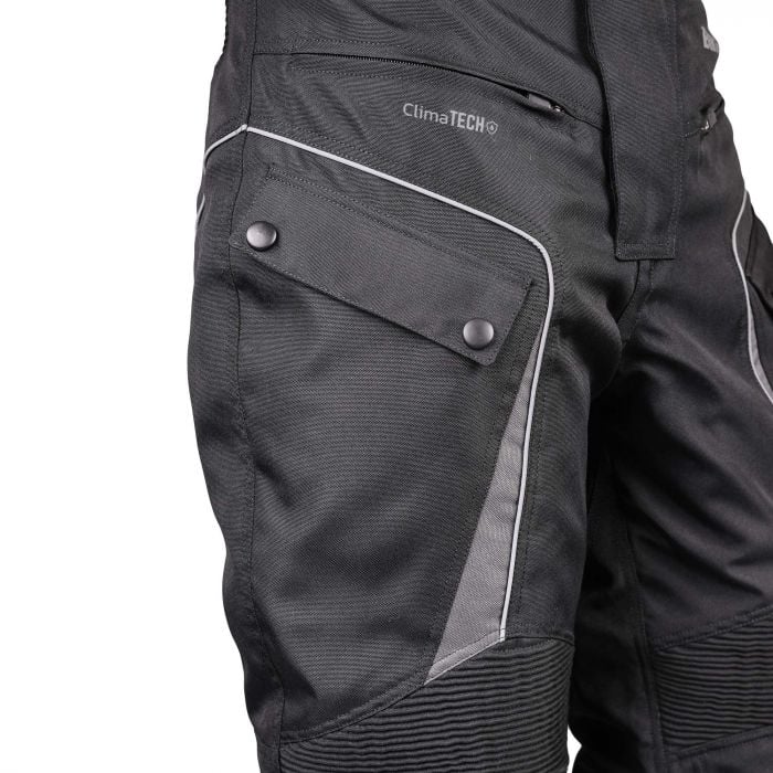 A removable quilted thermal lining offers sublime comfort for day-long rides and wear, whatever the season, whilst ClimaTech waterproof technology ensures all-weather performance and protection too. Stretch motion panelling at the side and rear allow a comfortable and flexible fit with waist adjustment velcro tabs for additional tailoring. A 200mm zipper at the rear allows jacket connectivity to secure the pant to an accompanying jacket. Finished off with two large thigh pockets and 2 smaller upper pockets, that offer versatility and storage for on-the-go riding essentials and that’s been specially angled to ensure they remain closed whilst riding. Reflective piping around the thigh pockets add additional styling and side visibility at night.