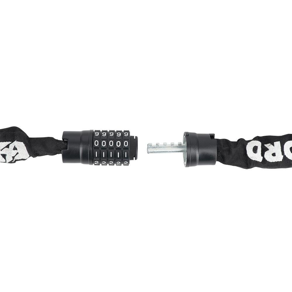 The Combi Chain 8 is a multi-purpose chain lock. It has a 5-digit resettable combination and comes with an 8mm hardened steel chain which has a protective cover.