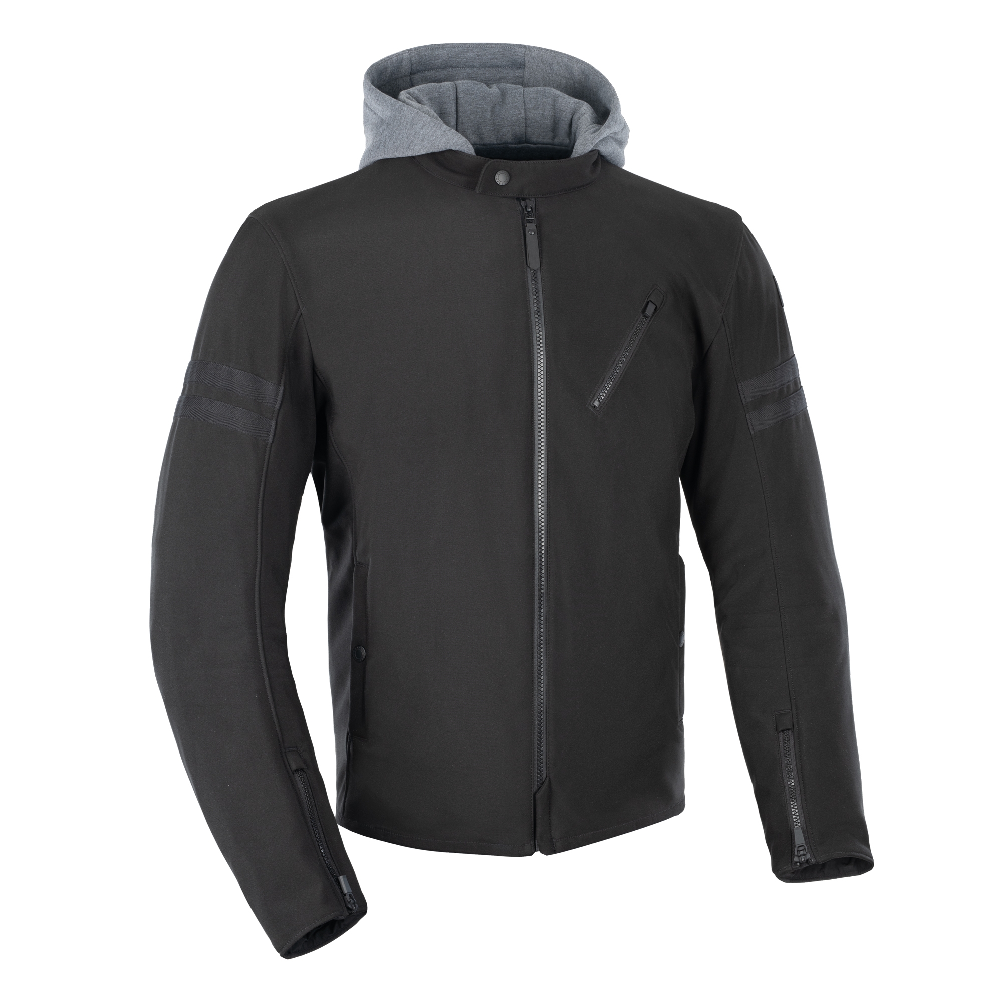 The Faringdon jacket features a water-resistant and windproof construction, CE level 1 protectors at the shoulders and elbows and a removable jersey hood.