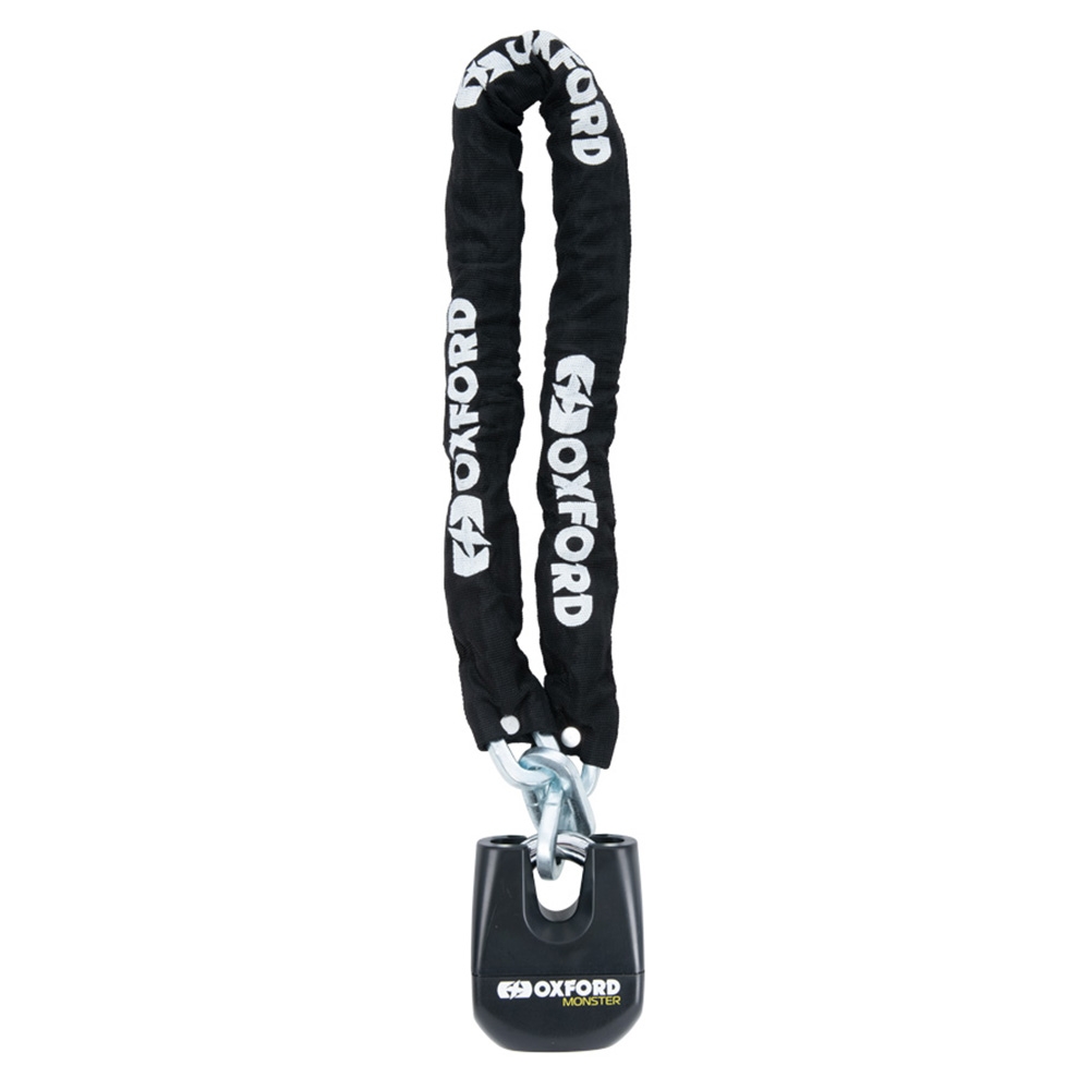 The Oxford Monster chain and padlock has a 12mm square chain made from Ni-Cro-Mo alloy steel and covered in a protective sleeve to help protect your paintwork.