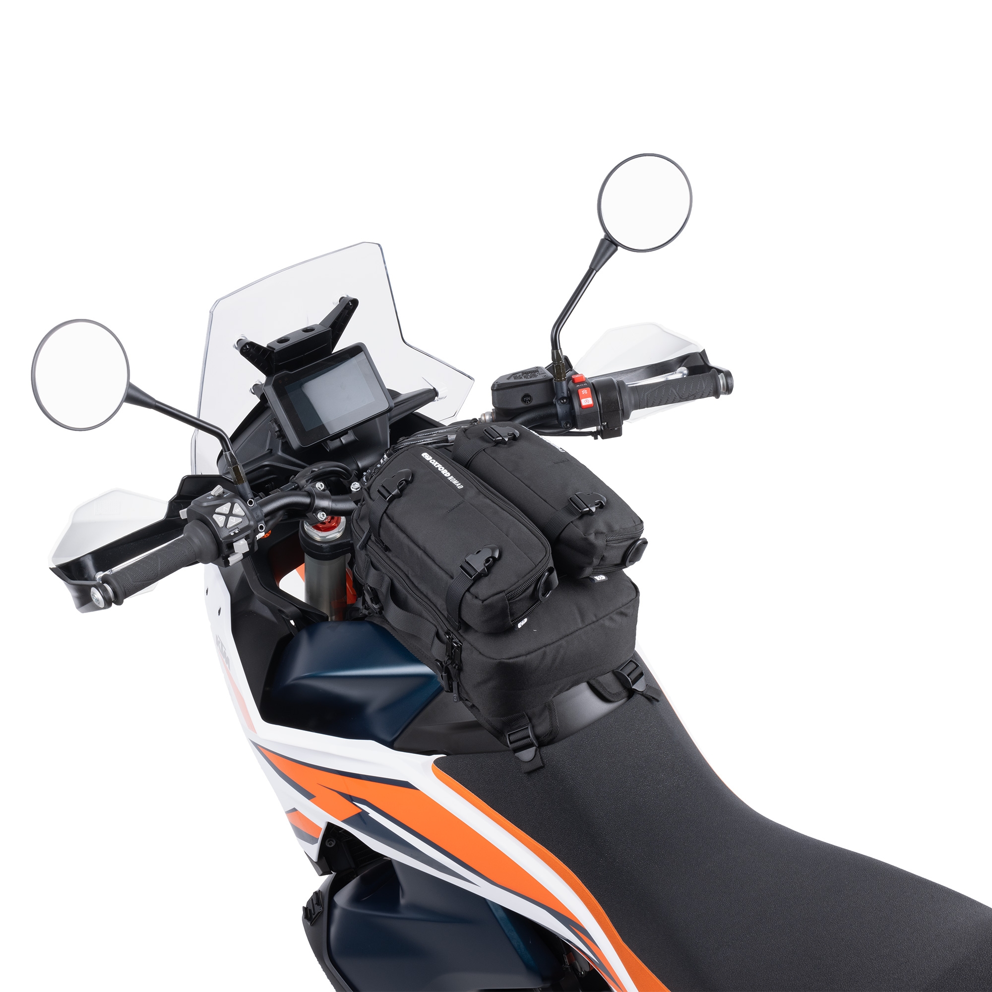 Starting with a harness, secure this to your bike and then choose from a range of fully adjustable bags, packs and pouches, and attach these in whatever way suits the needs of your ride.