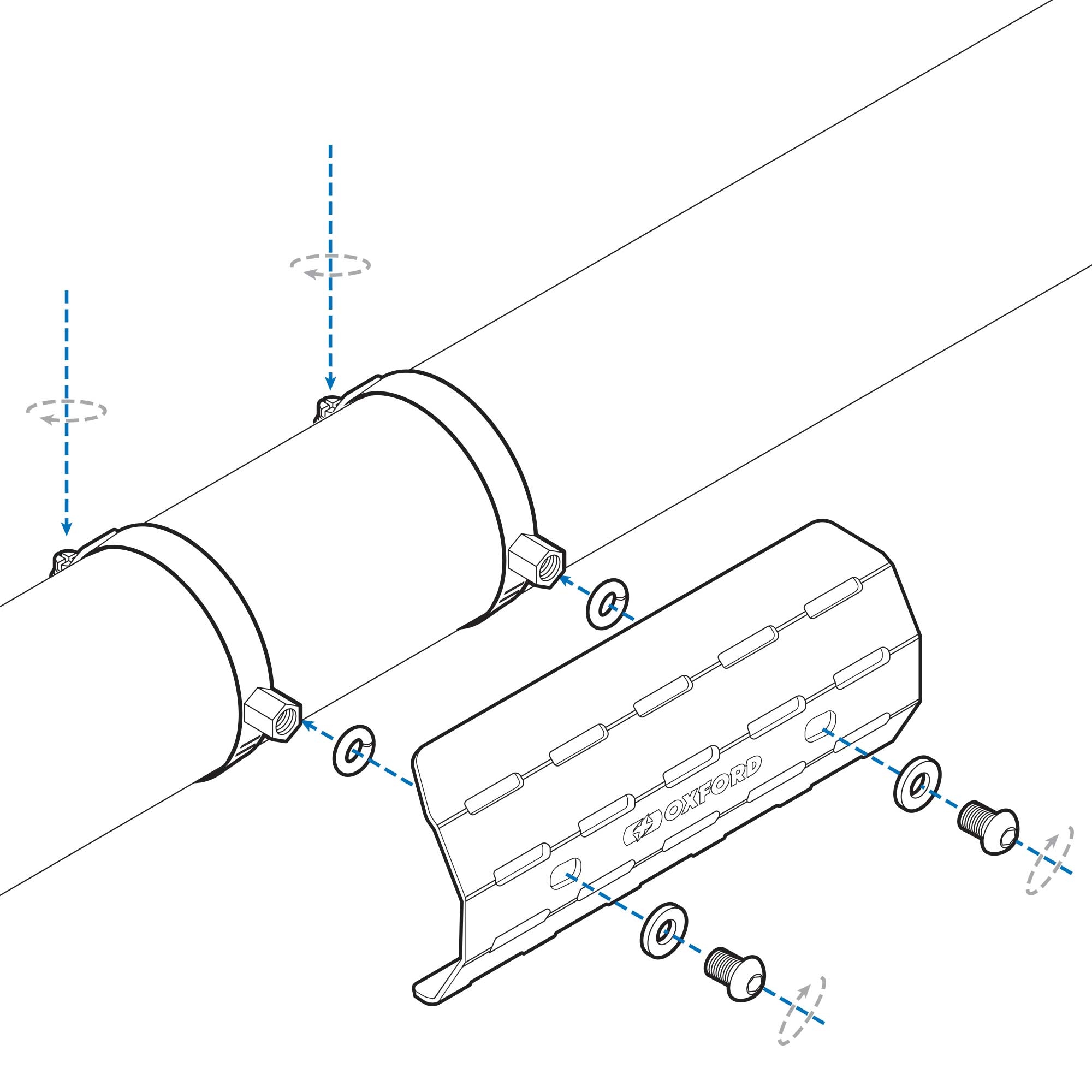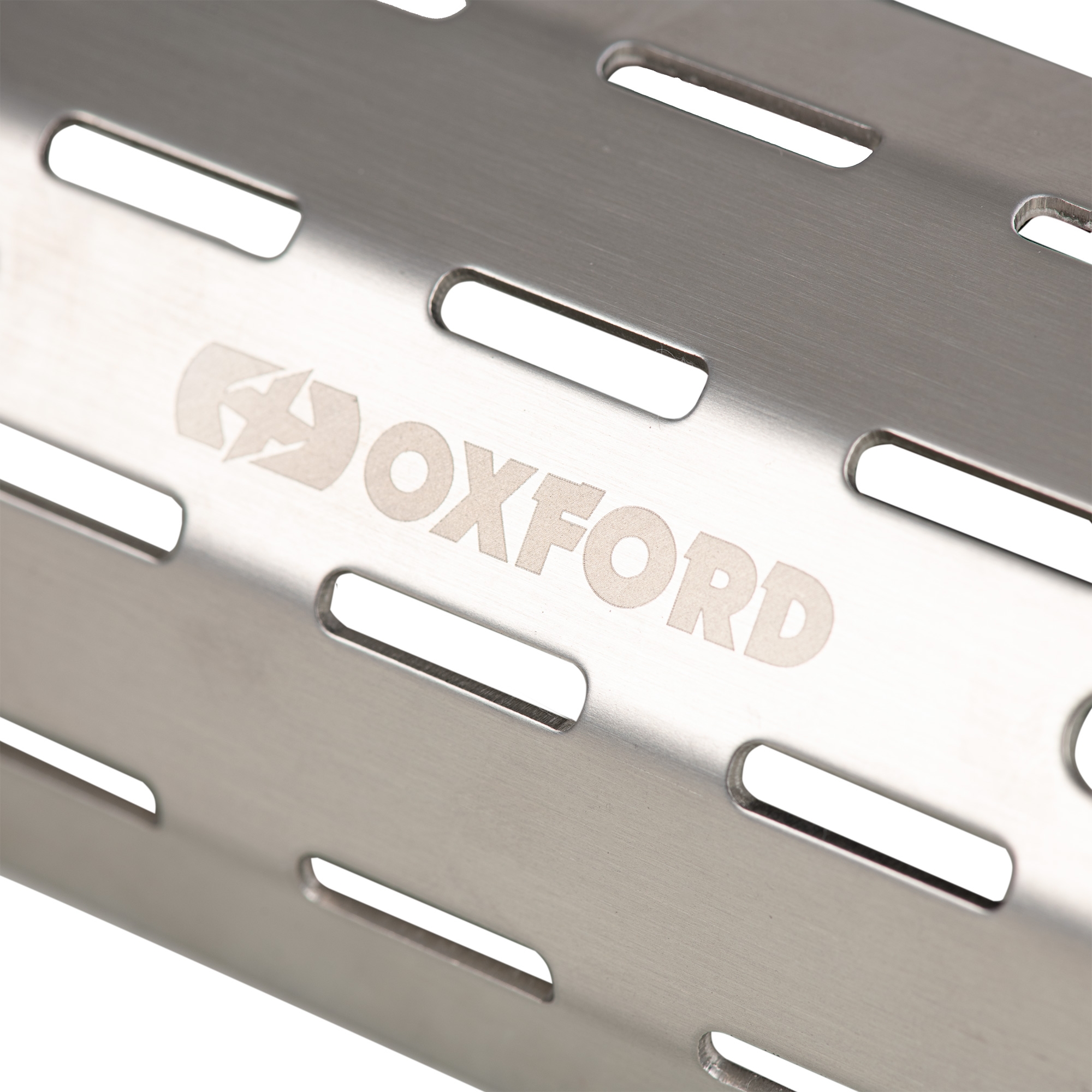 Oxford's Exhaust Heat Shield offers thermal protection by deflecting radiated exhaust heat and guards against you, your clothing or your accessories from accidently touching a hot exhaust system.