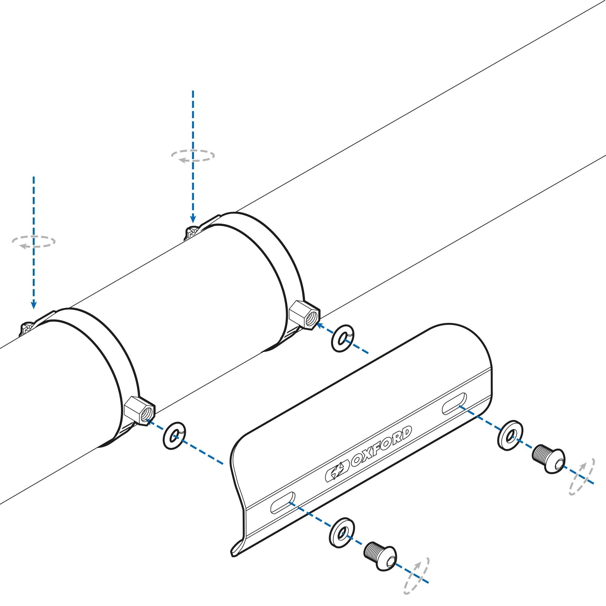 Oxford's Exhaust Heat Shield offers thermal protection by deflecting radiated exhaust heat and guards against you, your clothing or your accessories from accidently touching a hot exhaust system.